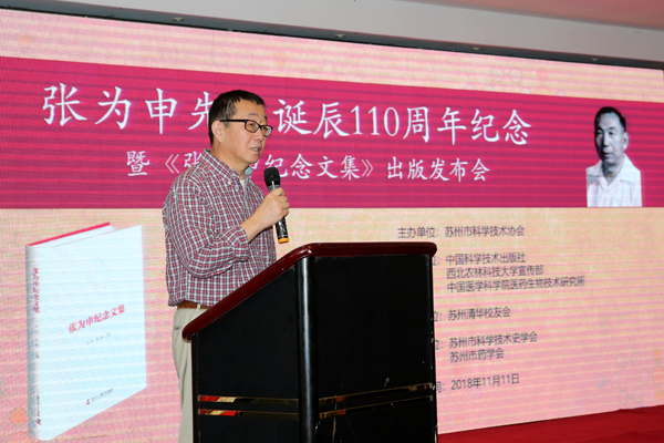 11月11日,張為申先生誕辰110周年紀(jì)念暨《張為申紀(jì)念文集》出版發(fā)布會(huì)在蘇州隆重舉行?;顒?dòng)由蘇州市科學(xué)技術(shù)協(xié)會(huì)主辦,蘇州市科學(xué)技術(shù)史學(xué)會(huì)和藥學(xué)會(huì)承辦,國(guó)內(nèi)醫(yī)藥界與科技史界有關(guān)學(xué)者、專(zhuān)家、領(lǐng)導(dǎo)和各單位160余人參加。