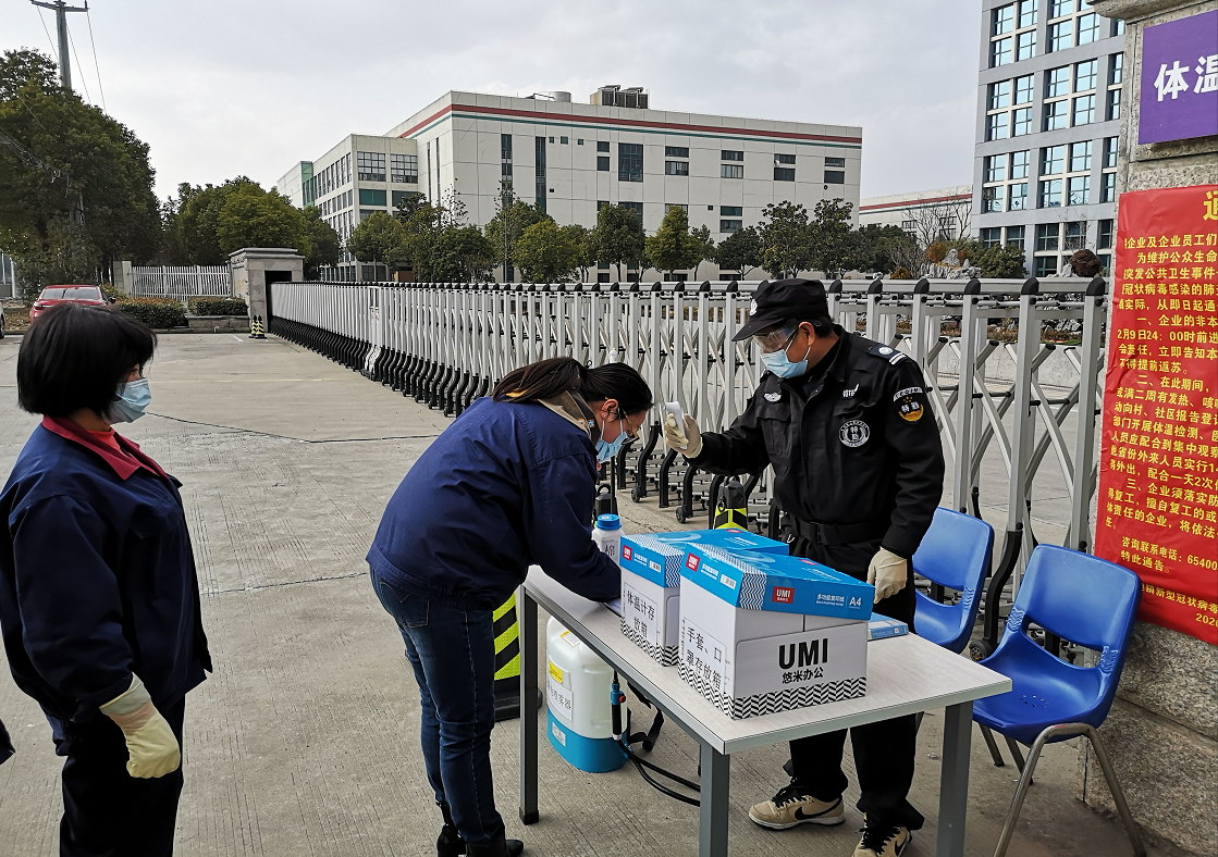 2、根據(jù)應(yīng)急預(yù)案的要求,僅留一個(gè)東大門(mén)一個(gè)出入口,關(guān)閉廠區(qū)其他出入口,并在門(mén)衛(wèi)配置體溫檢測(cè)儀、消毒液、口罩等物資。
