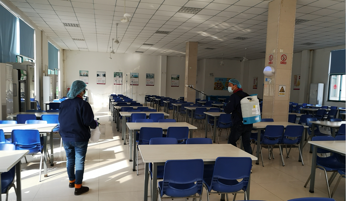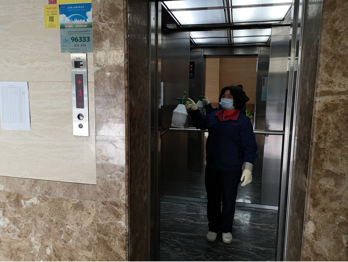 5、黨委聯(lián)合綜合管理部,每日分配2-3名黨員,對(duì)公共區(qū)域定時(shí)進(jìn)行消毒,電梯、食堂為重點(diǎn)區(qū)域。