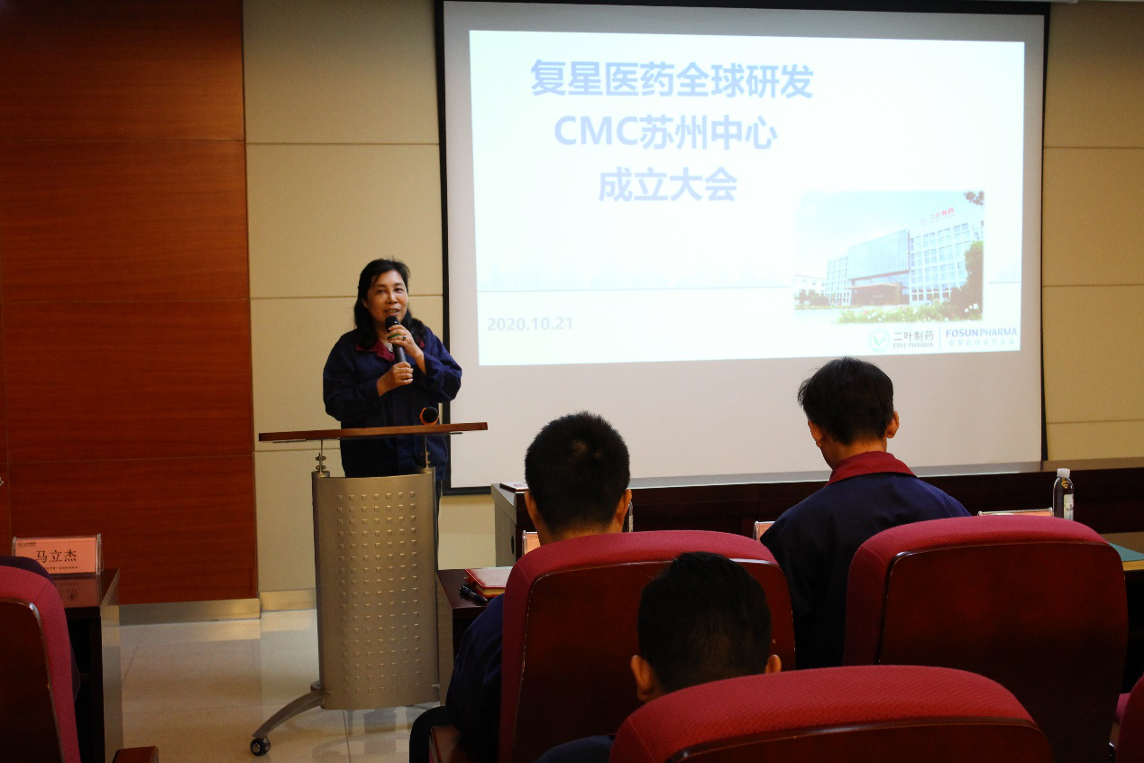 10月21日,復(fù)星醫(yī)藥全球研發(fā)中心CMC蘇州中心(簡(jiǎn)稱CMC蘇州中心)成立大會(huì)在蘇州二葉制藥有限公司召開。這標(biāo)志著復(fù)星醫(yī)藥在蘇州的CMC研發(fā)中心正式成立,是復(fù)星醫(yī)藥在布局創(chuàng)新藥轉(zhuǎn)型的時(shí)代背景下實(shí)現(xiàn)“快0.01秒”的重要舉措。復(fù)星產(chǎn)業(yè)公司領(lǐng)導(dǎo)、蘇州二葉管理團(tuán)隊(duì)、CMC蘇州中心全體人員出席本次會(huì)議。